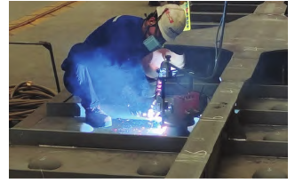摘要: 为降低薄板平面分段建造过程中产生的残余应力和面外变形对分段的力学性能和建造精度的影响,对其进行测量和演化分析。以长度为16. 4 m、宽度为14. 8 m 的典型薄板平面分段为研究对象,基于超声波应力测量和激光扫描变形测量等方法,对实施高强钢薄板机械矫平、等离子切割、角钢激光焊接、T 梁装配-焊接、绑扎碗焊接和焊后火工矫正等建造工艺过程中产生的残余应力和面外变形进行测量和分析。研究表明: 高能束等离子切割对板材变形的影响较小,但会显著影响板材的残余应力状态; 采用激光复合焊接方式的平面分段底板拼焊和角钢平角焊对平面分段的变形和残余应力的影响都可忽略; T 梁装配和焊接会显著影响平面分段底板的平整度和残余应力状态,是平面分段精度建造的重要环节; 绑扎碗切割及焊接对平面分段的建造精度影响较小,可协调与其他环节同步实施,提升建造效率; 焊后背烧的火工矫正可有效提升平面分段底板的平整度,改善残余应力状态,其实施工艺较为依赖经验,强度大,周期长。研究成果可供薄板平面分段的高效及精确建造参考。