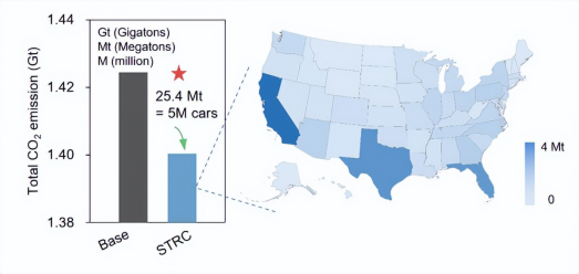 基于真实市场推演一下:美国目前约有 2.8 亿辆注册乘用车,每年因交通运输产生的 CO₂排放总量约为 19 亿吨。如果将这项技术应用于美国所有的乘用车,每年预计可减少约 2,540 万吨的二氧化碳排放。这一减排量,相当于直接从道路上消除了约 500万辆燃油汽车。