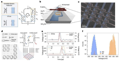 此次,团队成功研制出一个4×4规模的超导纳米线存储器阵列,专为行列式可扩展操作设计,功能密度高达2.6兆比特/平方厘米。每个存储单元由一条包含两个温敏超导开关和一个可变动力学电感器的纳米线环构成,结构精巧,响应灵敏。