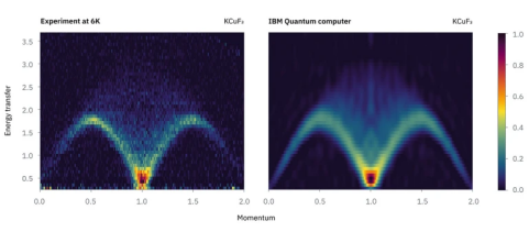 左图为中子散射实验结果,右图为IBM量子计算机辅助模拟该实验的结果。