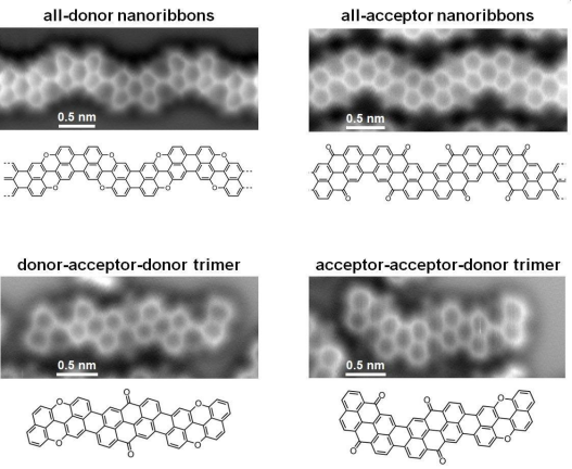 他们发现,随着链长增加,纯供体纳米带的给电子能力增强,纯受体纳米带的受电子能力也随之提高;而混合纳米带的电子性质,则取决于供体与受体单元的具体排列顺序。团队据此建立了理论模型,为按需设计材料性能提供了依据。